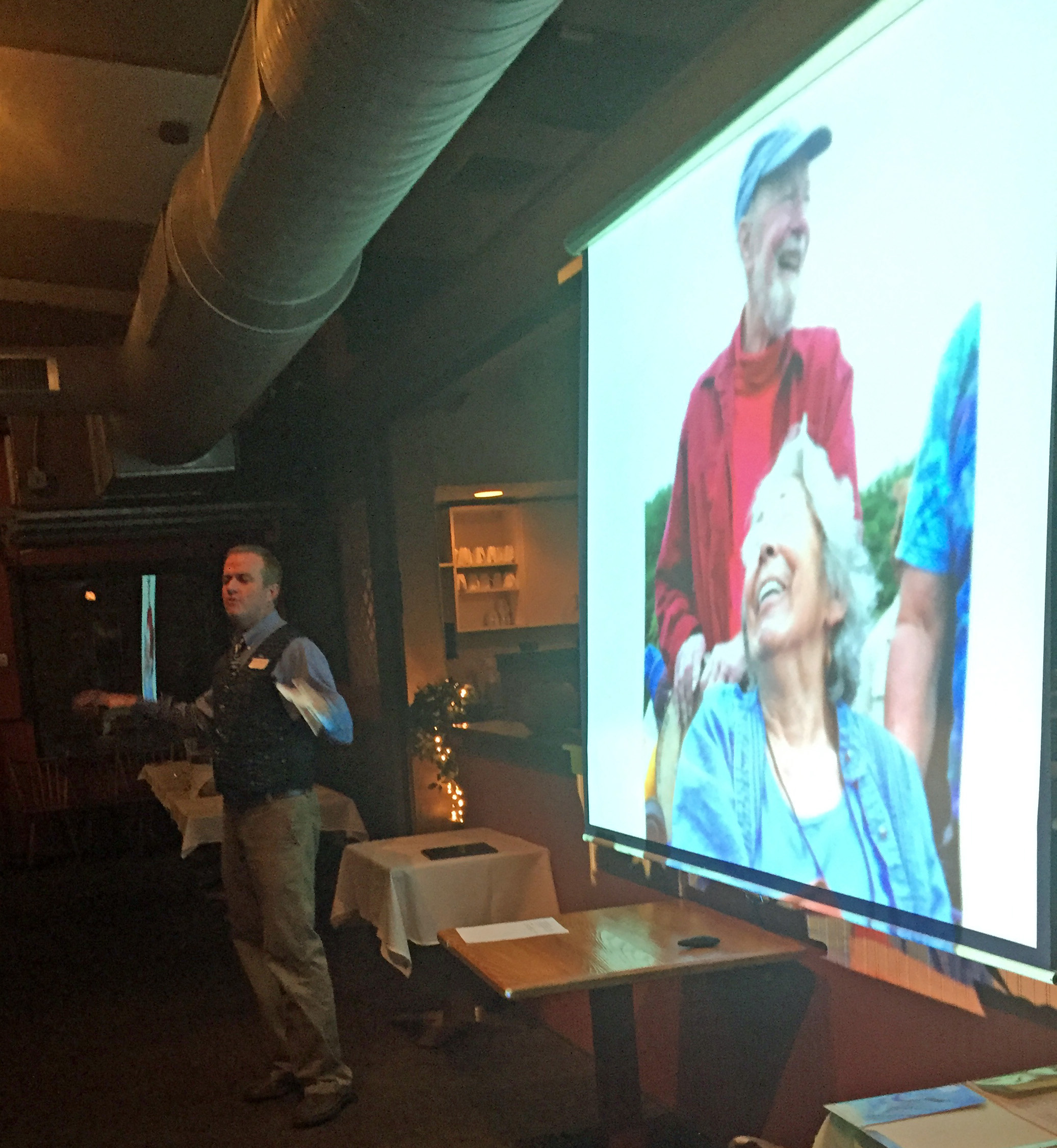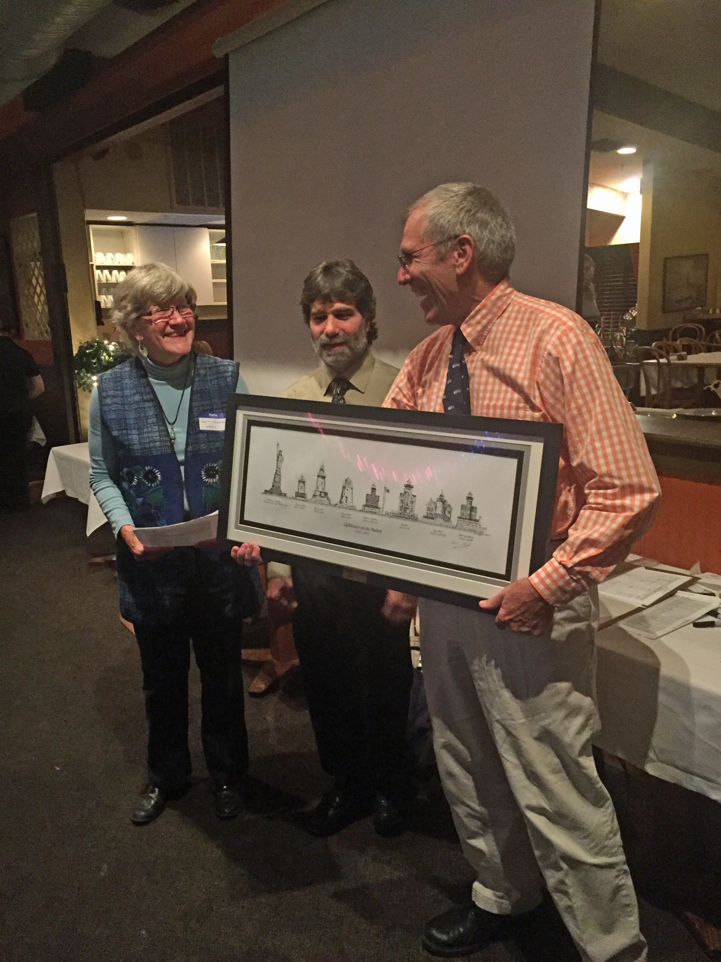Following dinner, President of the Board Lucy Johnson reported on the recent May Conference, “Seeing the Hudson River in the 21st Century” and the September Field Trip to Constitution Marsh and the West Point Foundry (see the report here), announced next Spring’s Conference, “Hudson River and Mohawk River: the Coming Together of the Waters,” and next fall’s Mohawk River Watershed Tour. She also welcomed nominations for the board from the assembled company; they can be sent to her at This email address is being protected from spambots. You need JavaScript enabled to view it..