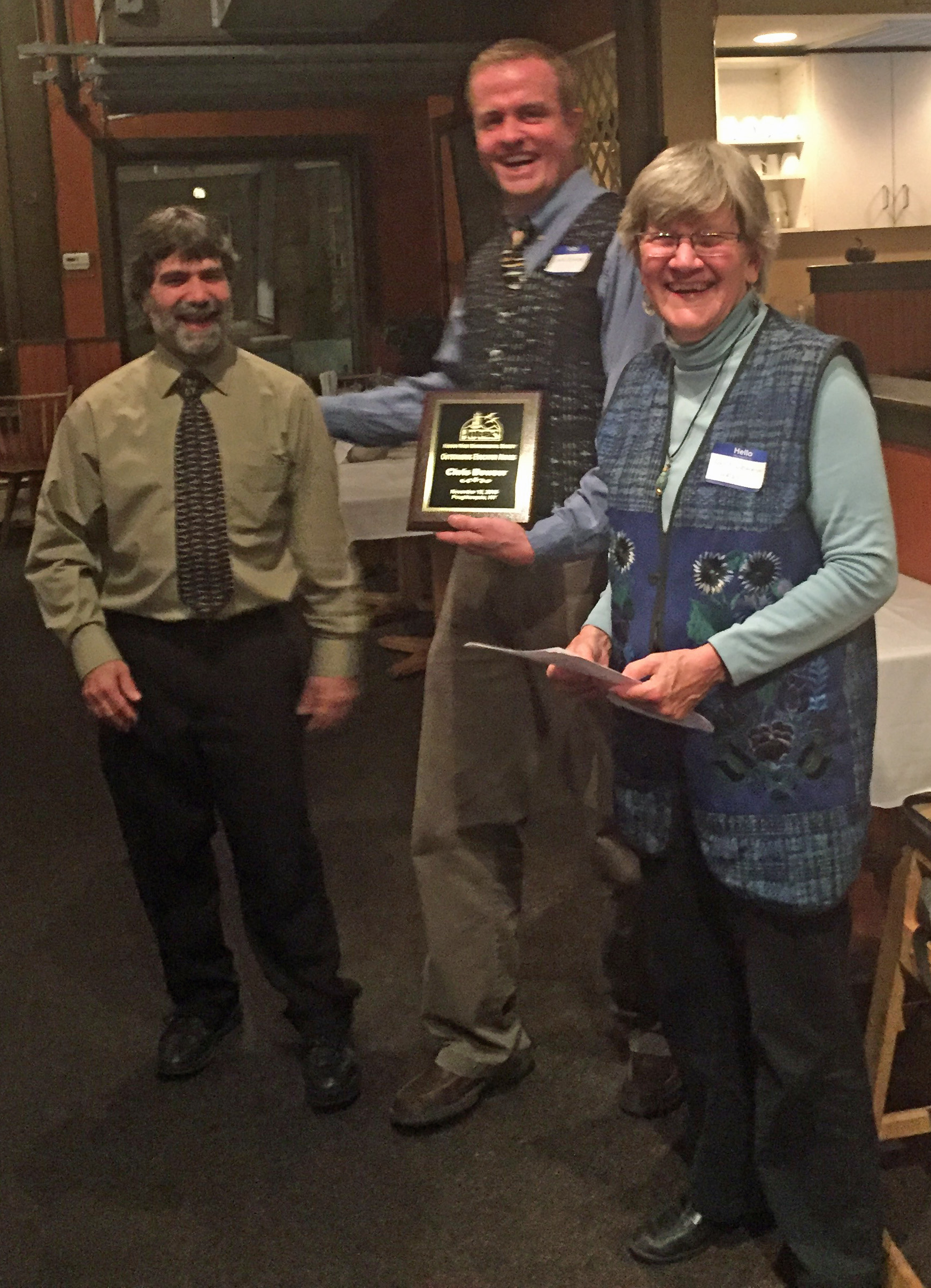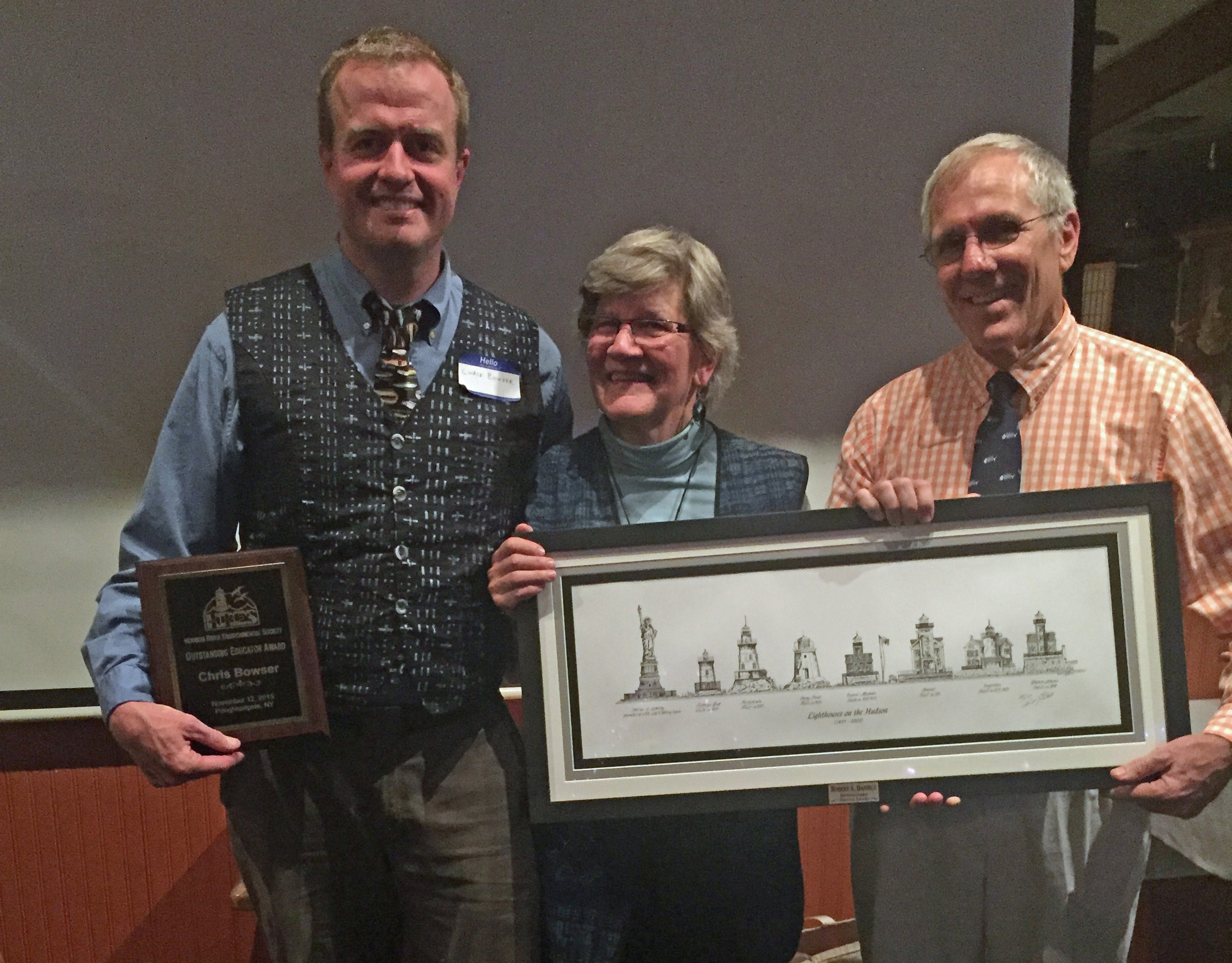 The HRES Outstanding Educator Award went to Chris Bowser, for his dedication to educating all Hudson Valley children and adults about the wonders of our River. In his talk, illustrated with wonderful slides, Bowser honored all of his mentors and the people he has worked with.