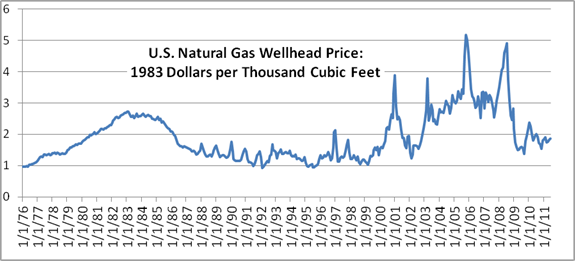 Natural gas wellhead prices in constant dollars. [US EIA (b) 2011]